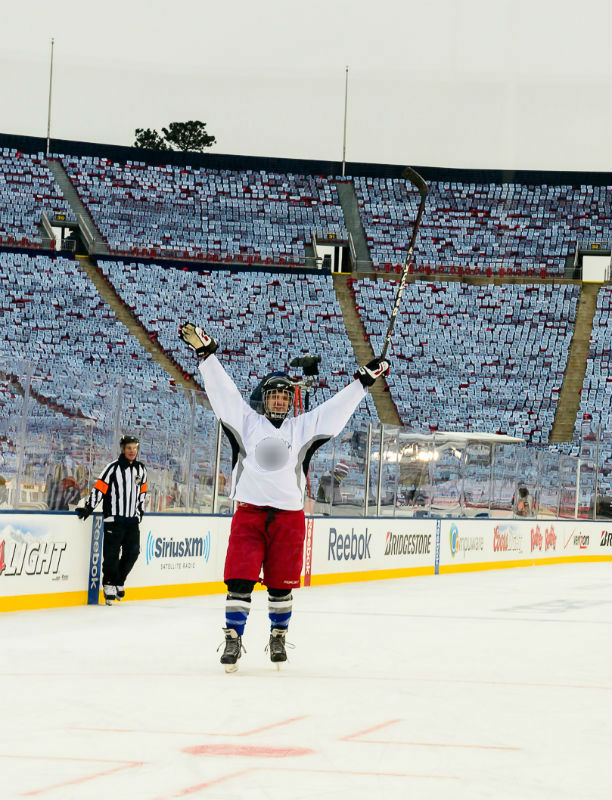 A personal highlight for me was a chance to get out on the ice on Dec. 30 in a pickup game among the assembled media. Other than workers preparing for the New Years Day game, the gigantic stadium was empty, but it didn’t matter. I’m pretty sure I was as excited as this guy. Or this guy. I may or may not have kissed the ice before leaving. A friend was kind enough to take photos for me, producing some shots that I will treasure for a lifetime. Especially this one: