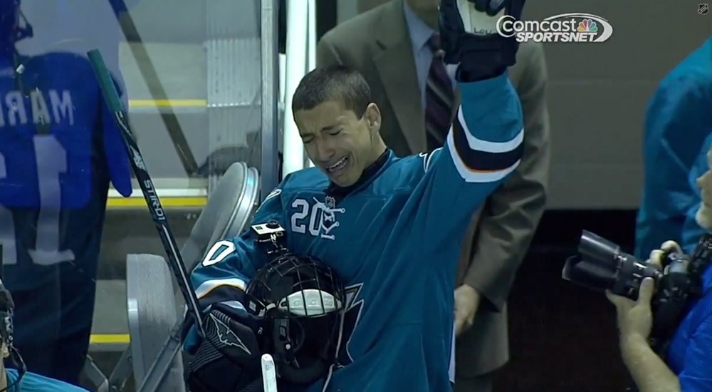 What I’m getting at is that hockey players aren’t naturally inclined to welcome an outsider behind the walls. Certainly not on game day. And yet, the Sharks did just that, and then went the extra step of making their guest a part of the team and taking an already memorable day to the next level.