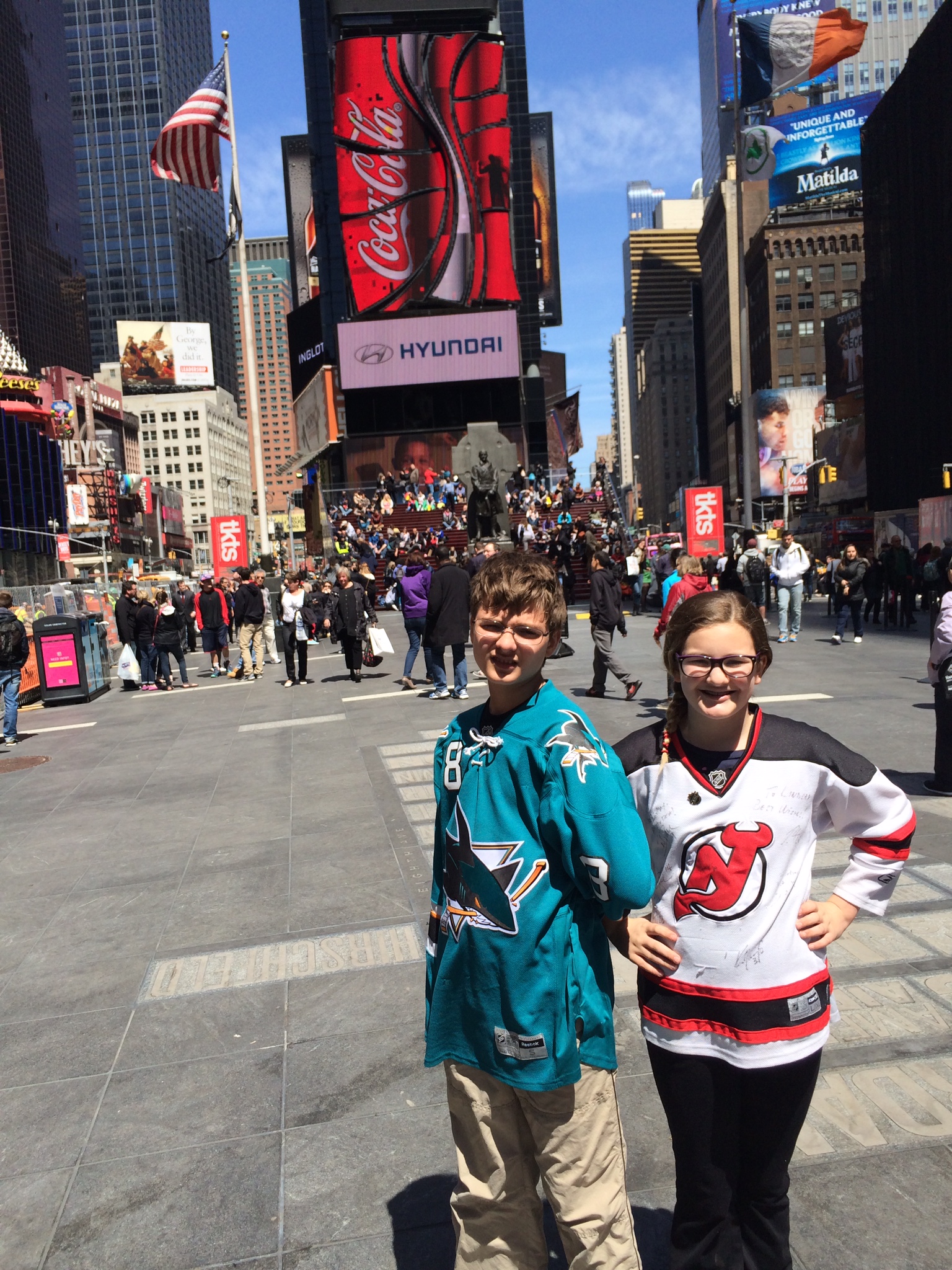 There were no such concerns yesterday. I knew Ryan would be fine. He immediately sought out a couple of other kids in Sharks jerseys, while Riley looked for some fellow Devils fans.